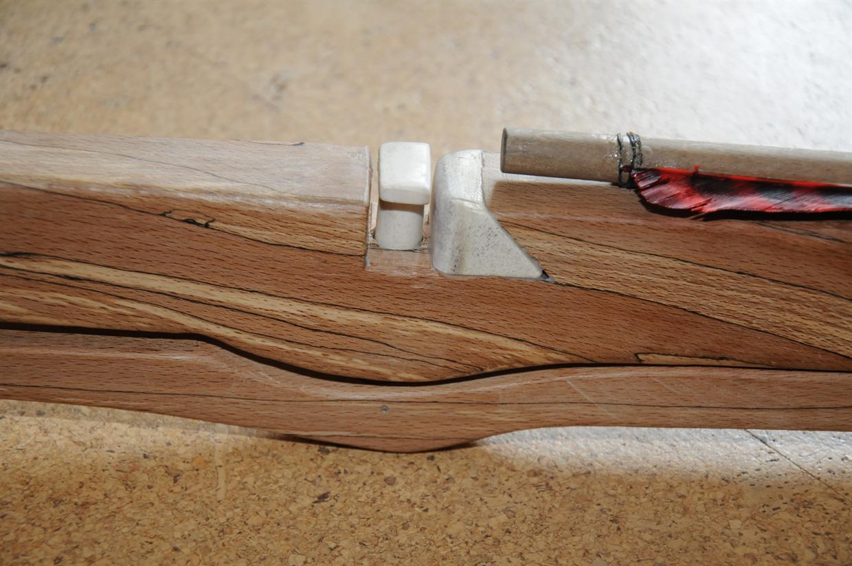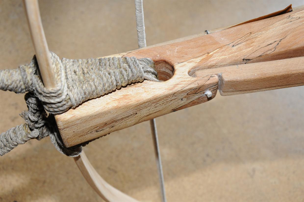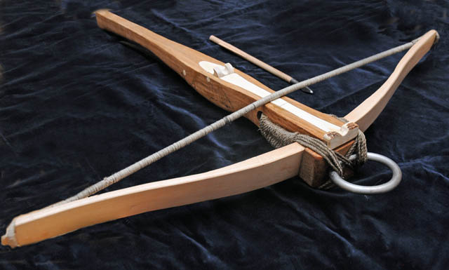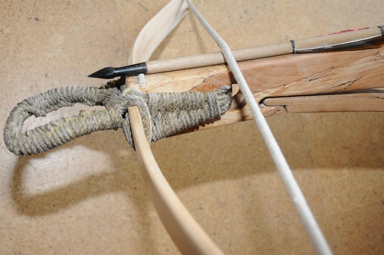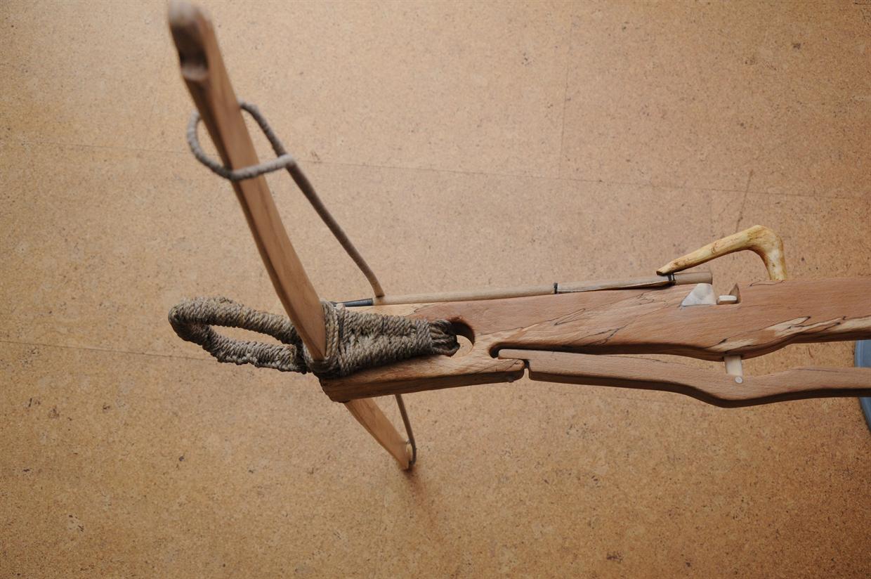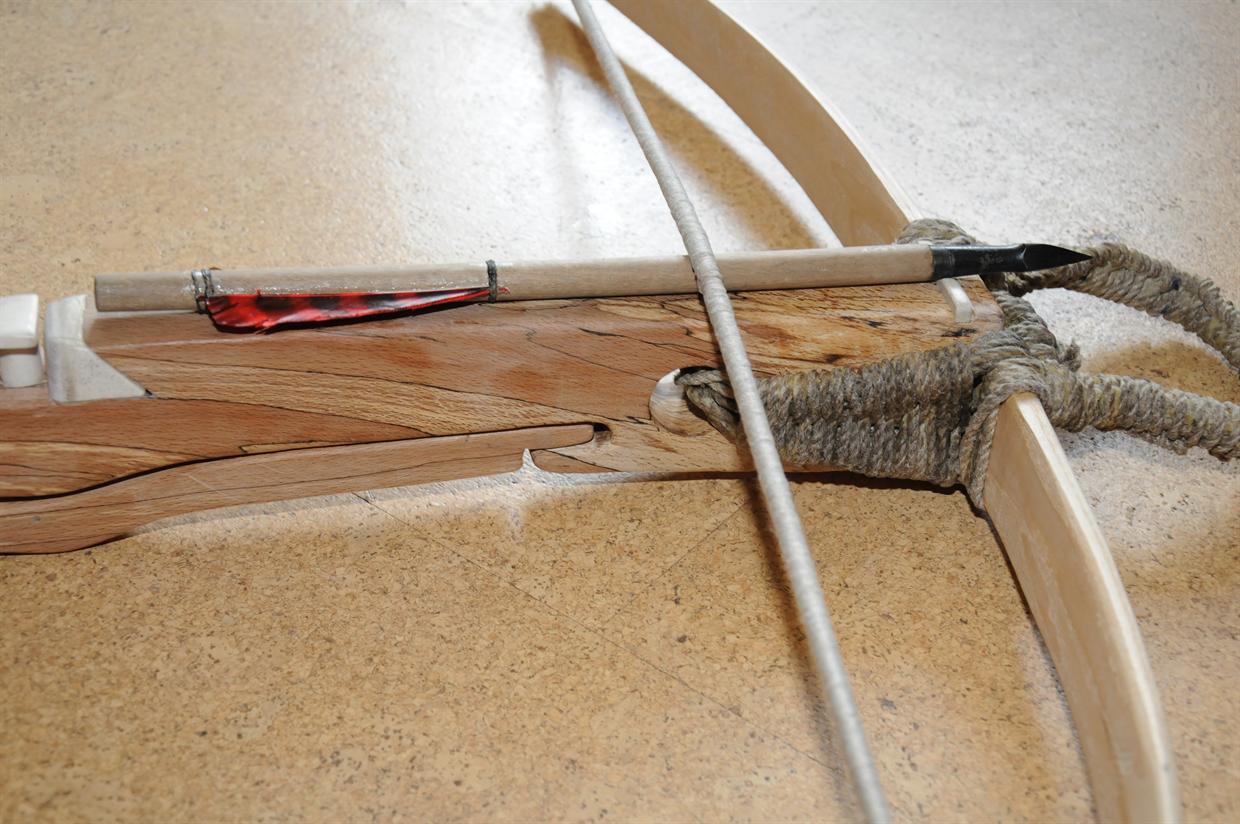 Als vorerst letzter Nachbau hier eine frühe Armbrust mit recurve gebogenem Holzbogen