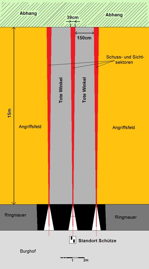 Maßstäblicher Schussfeldplan auf Burg Neuleiningen: