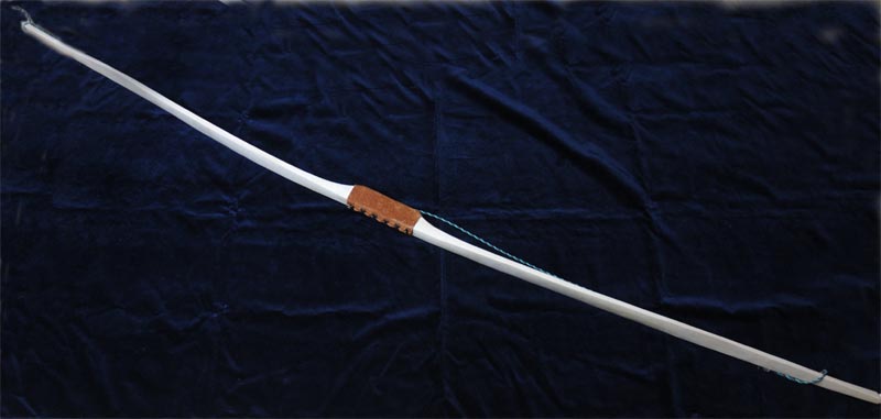 In addition the bow is covered by a safety cord of leather and hemp for the protection from flying parts in case of a break of the bow