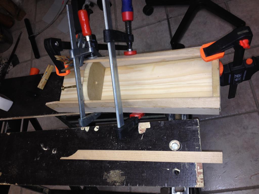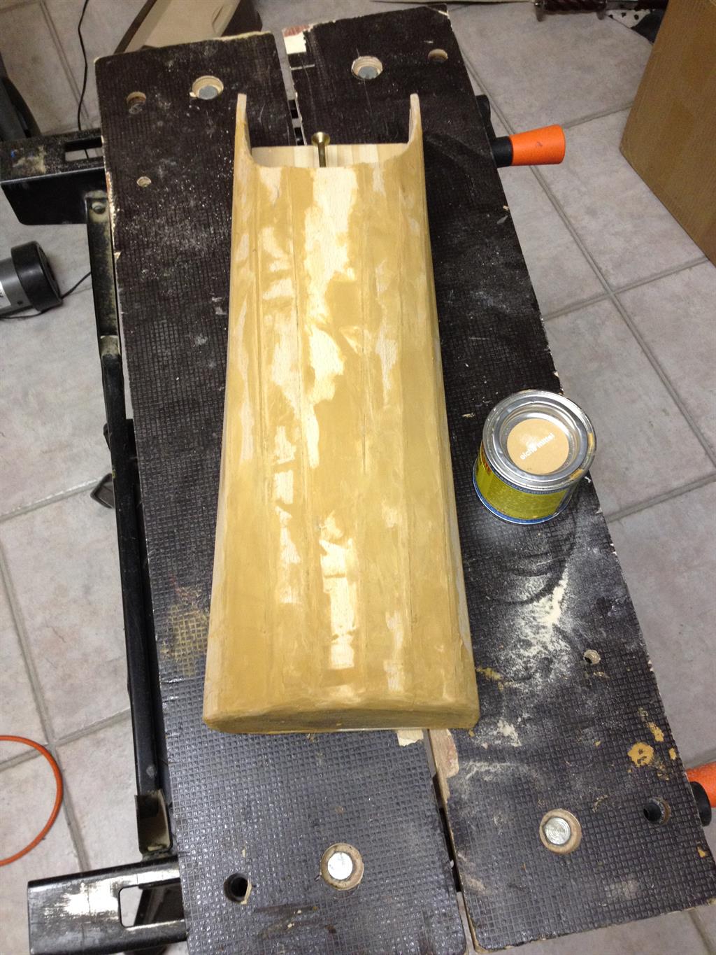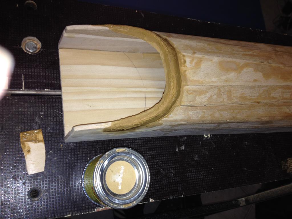 Anschließend wurde der fertig geleimte Holzkörper verspachtelt ... | ||||