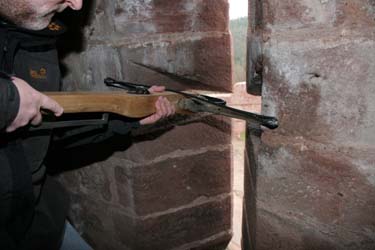 Schießversuch mit der Armbrust im Bergfried der Wangenbourg | ||||